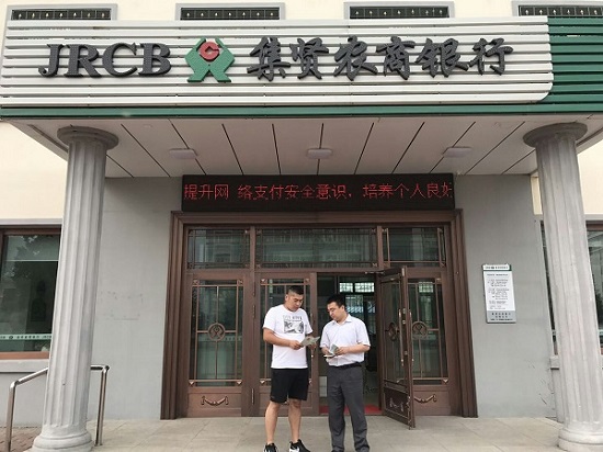 活动启动当天,集贤农商行辖内26家营业网点全部参与其中,全辖LED屏滚动播放普及金融知识万里行活动的宣传标语。各营业网点普遍采取 “请进来”与“走出去”并举的宣传方式。员工着装整齐,以营业大厅、超市、商场、广场和周边居民社区为宣传阵地,有序的搭建宣传桌和宣传架,摆放各种宣传资料,向过往每一位客户宣传金融知识。活动期间,各支行抽调业务骨干人员组成二人宣传小组,深入商铺、个体商户和小微企业进行宣传,发放传单,现场向商户答疑解惑。同时,微信公众平台也向社会公众推送“支付安全”、远离非法集资、守住“钱袋子”等相关知识。