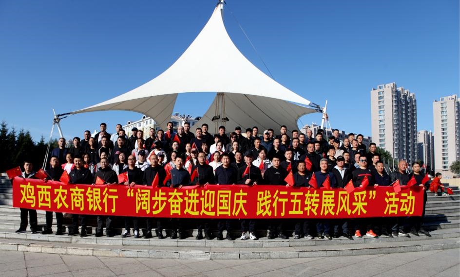 9月28日,鸡西农商银行在鸡西市文化广场开展了“阔步奋进迎国庆 践行五转展风采”活动,106人参加了活动。