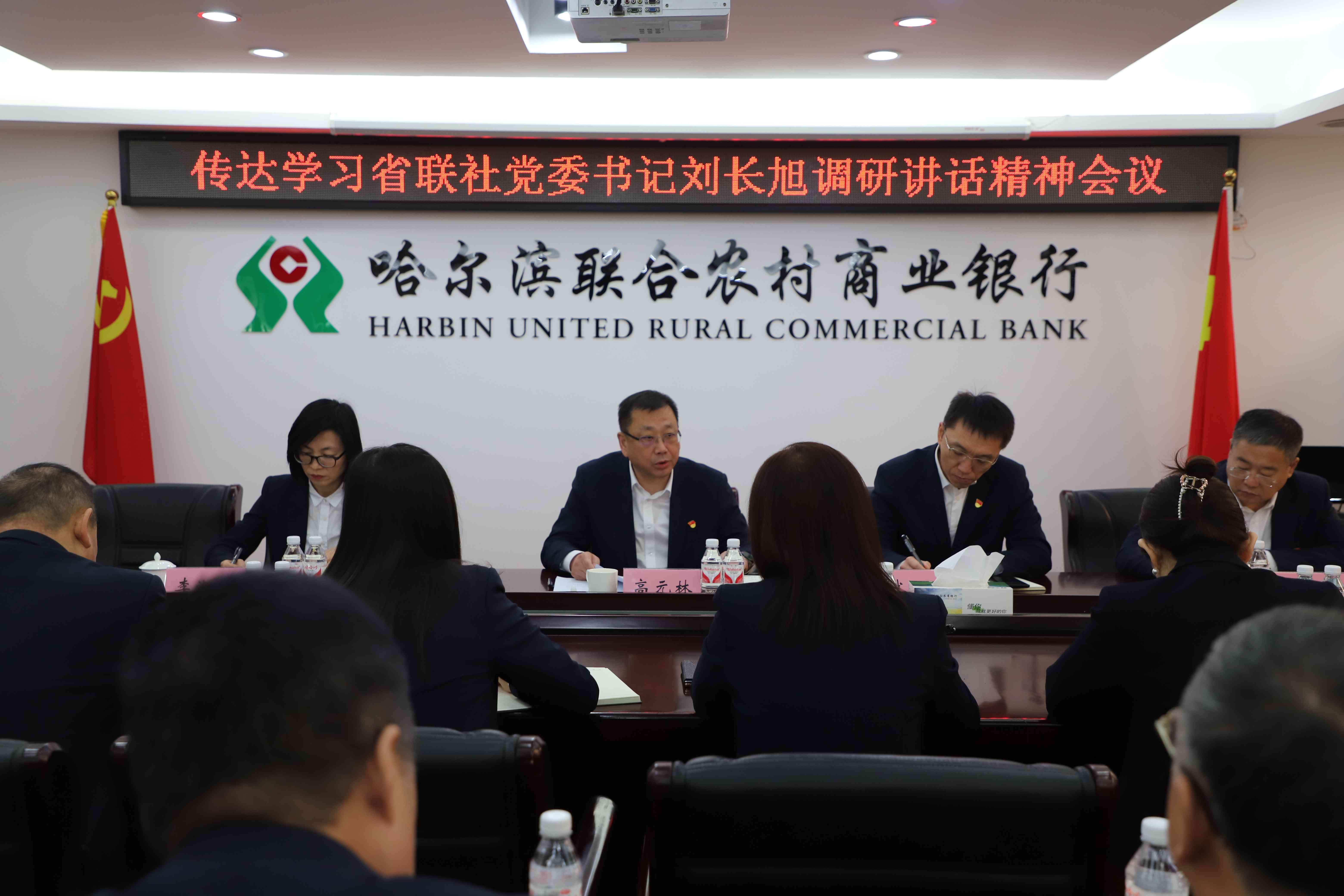 3月18日上午,哈尔滨联合农商银行组织召开党委(扩大)会议,学习贯彻省联社党委书记、理事长刘长旭赴宾州农商银行调研时讲话精神。哈尔滨联合农商银行党委书记、董事长高元林主持会议,并就贯彻落实会议精神,推进当前工作做出部署。