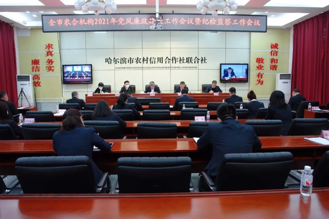 3月17日,哈尔滨市联社组织召开全市农合机构党风廉政建设暨纪检监察工作会议和党史学习教育动员大会。会议以视频形式召开。市联社班子成员、机关各部室副职级以上干部、纪检监察室全体、党务工作人员;县级行社班子成员、机关各部室负责人、纪检监察室全体、党务工作人员参加会议。