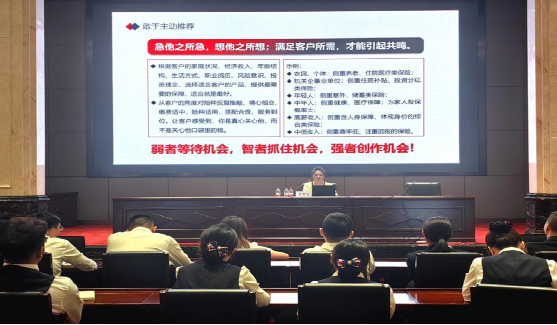 通过此次培训,不仅让员工掌握了保险业务知识和产品特性,更有效提升了员工的营销意识、技能及销售策略。今后学员将运用所学到的知识,精准营销服务客户,推动保险业务良好发展。