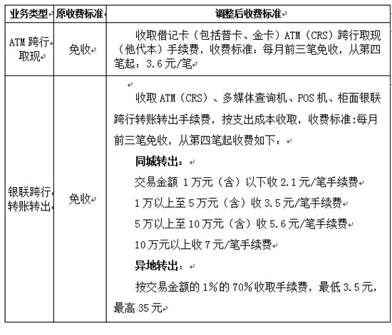 关于调整ATM跨行取现及银联跨行转账转出手续费的公告